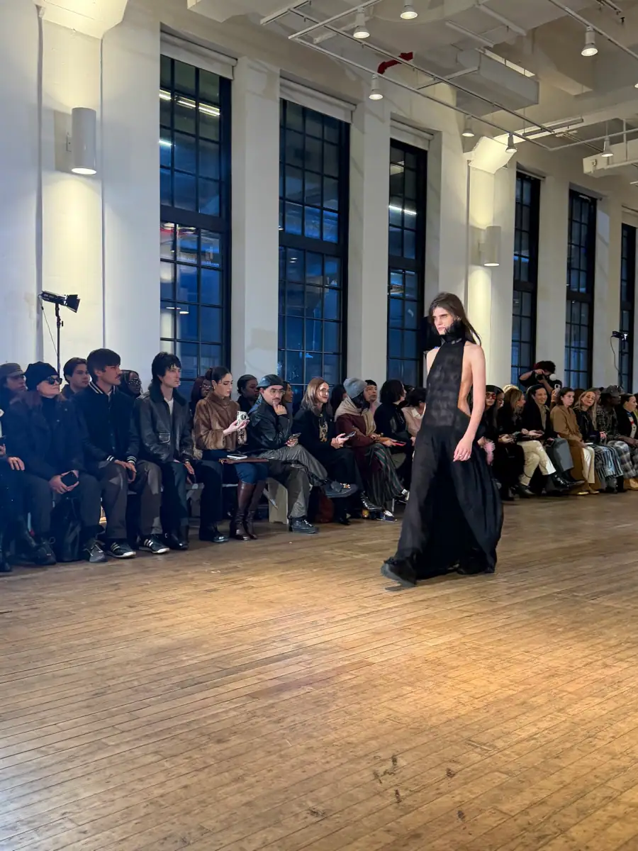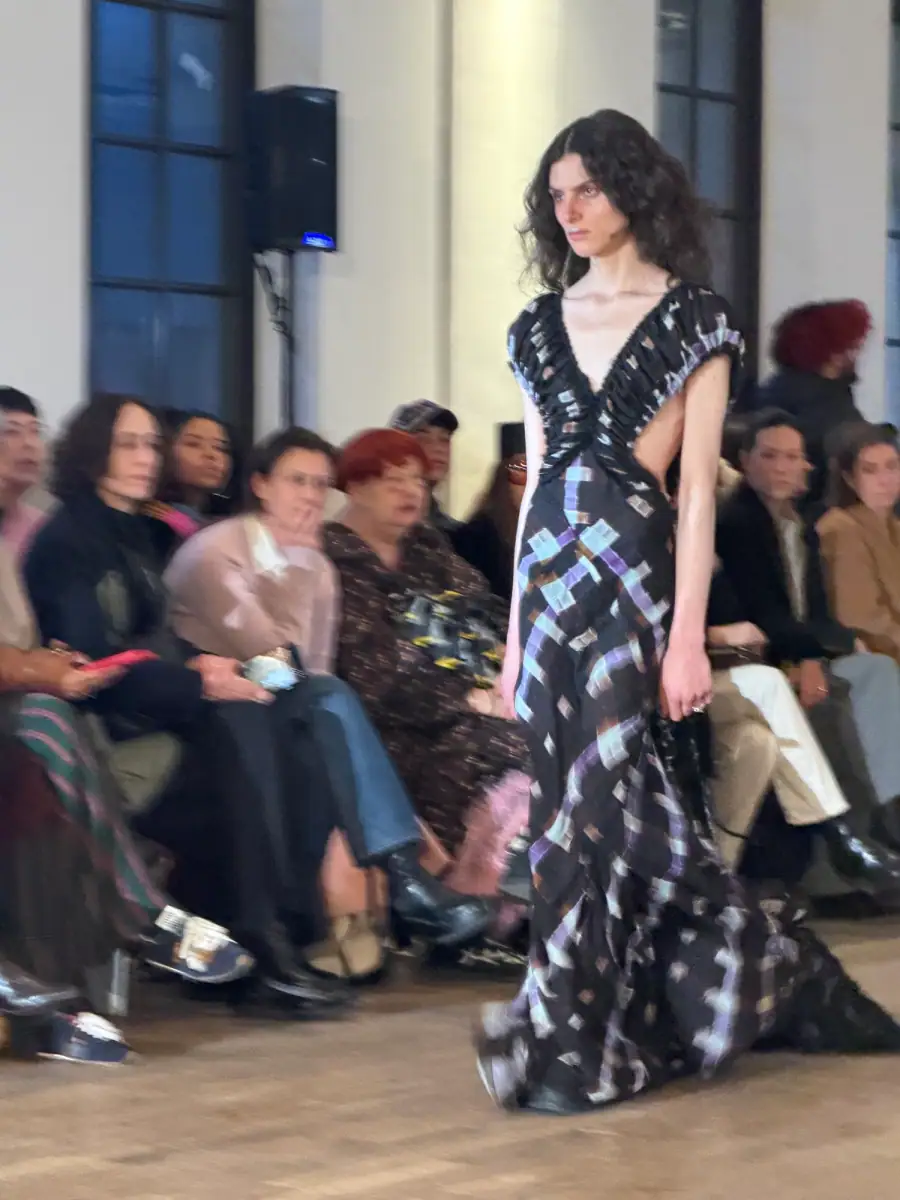 Satisfyingly weird clothes for weird times! No one does it better than Collina Strada. This season’s collection was a wild mashup of 1980s Victoriana Marie Antoinette vampires. Harsh darkness collided with ethereal lightness in the form of sheer floral maxi dress wonders, deliciously clunky overcoats and puffed shoulders paired with Transylvania-worthy neck ruffs.