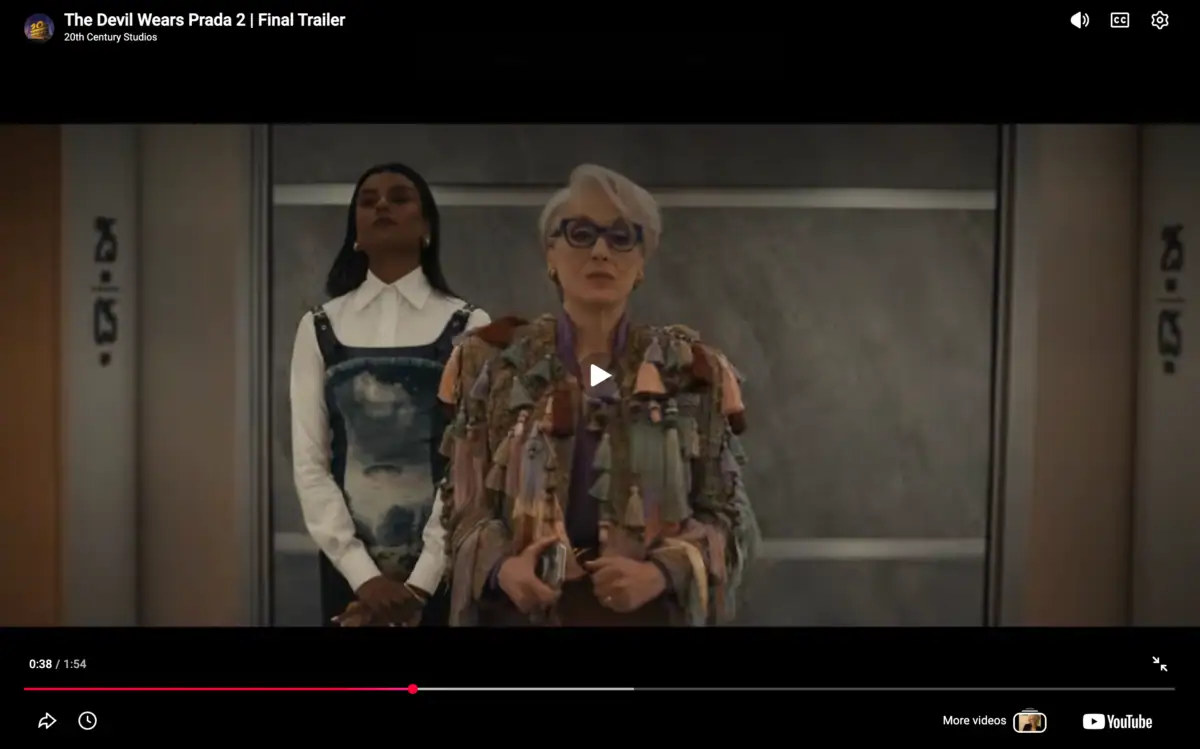 The Chanel blazer Andy Sachs wore in the 2006 film was equally as historic as her matching boots. The blazer itself (now vintage) draws a huge premium secondhand. Interestingly, some of the most standout blazers and jackets, we’ve seen in The Devil Wears Prada 2 so far are from Schiaparelli and Dries Van Noten. In the latest trailer, we see Miranda Priestly (Meryl Streep) shimmy in elevator while wearing the iconic Dries Van Noten tassel jacket. The jacket is designed by newly-named creative director Julian Klausner. (I own the same one and wore it to the Schiaparelli show in January; I knew there was something incredibly special about it.)