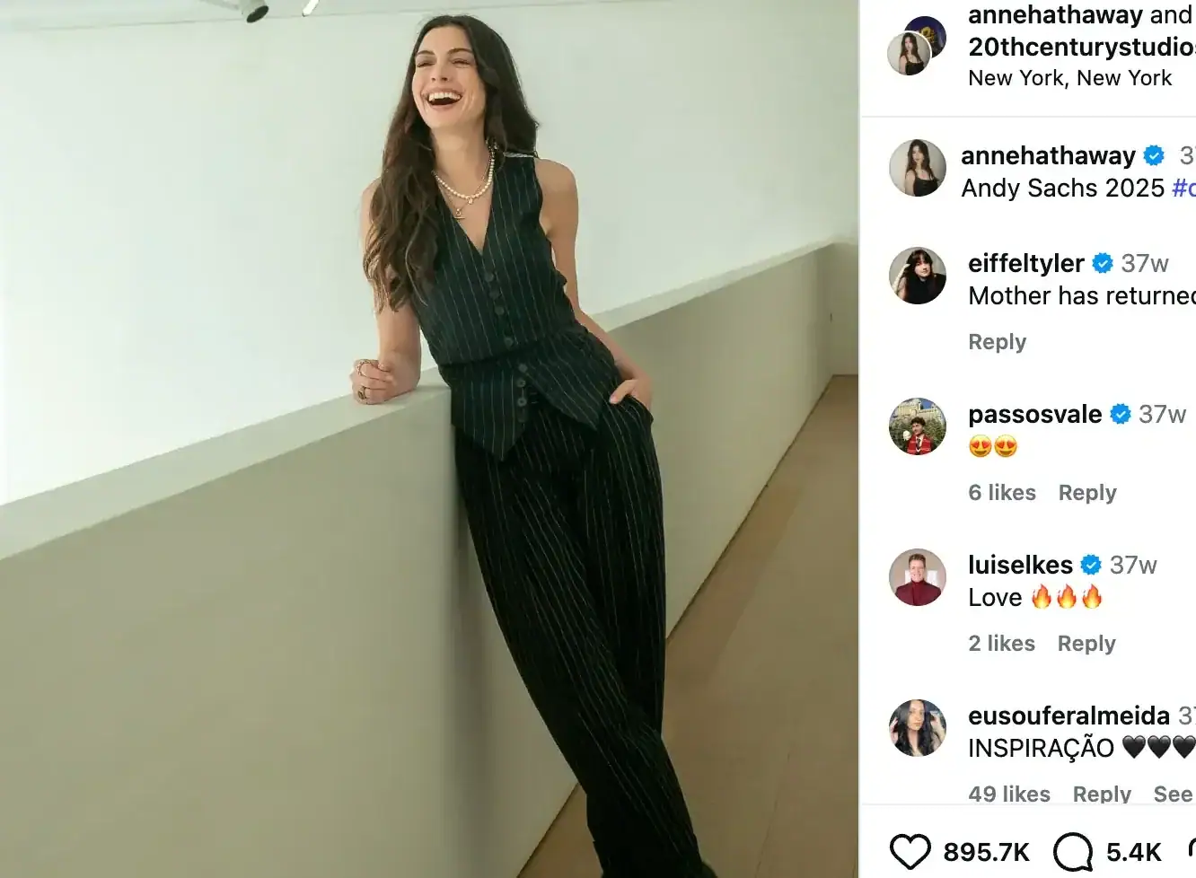 Hathaway reportedly wanted her new look to reflect an evolution of her character. “I pitched that Andy went on to do investigative journalism, traveled the world for 15 years… and when you’ve had an education at a place like ‘Runway,’ you know what to do when you see a consignment shop,” she told Vogue. “So she’s been thrifting for the better part of 20 years.”