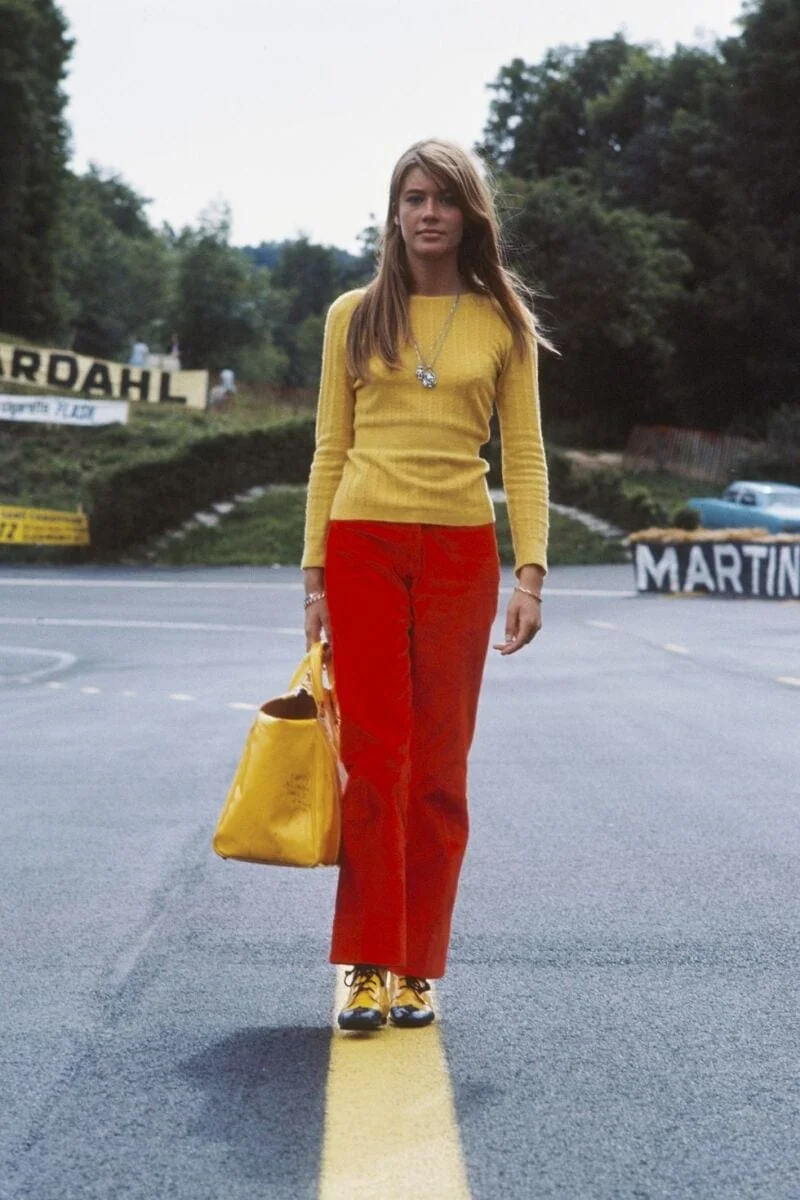 Much like Jane Birkin, Françoise Hardy epitomized the easy, sleek bohemian look of French girl chic. For the most part, her aesthetic is simple and toned down, making the biggest statement through fashion that was categorically statement-making at the time. Think: thigh-high leather boots with a simple sweater dress, a silver gilded chainmail dress worn with no accessories, a tailored black short suit with a particularly 1960s shape paired with white heeled Go-go boots.