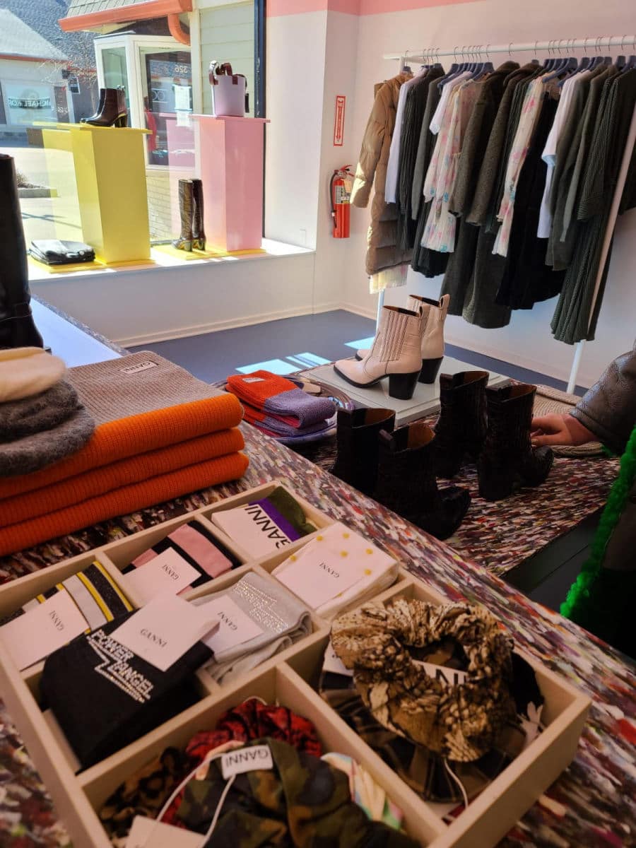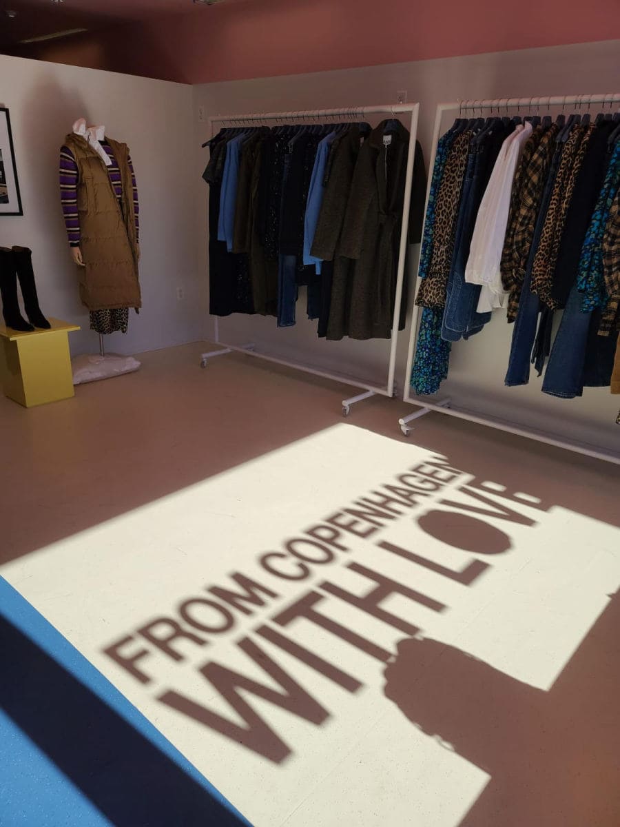 Fans of Ganni will be happy to know the new Woodbury Common outlet follows a similar design aesthetic to the rest of the retail stores. Think: bright colors, upcycled, colorful plastic furniture, and a great selection of chic Copenhagen pieces.