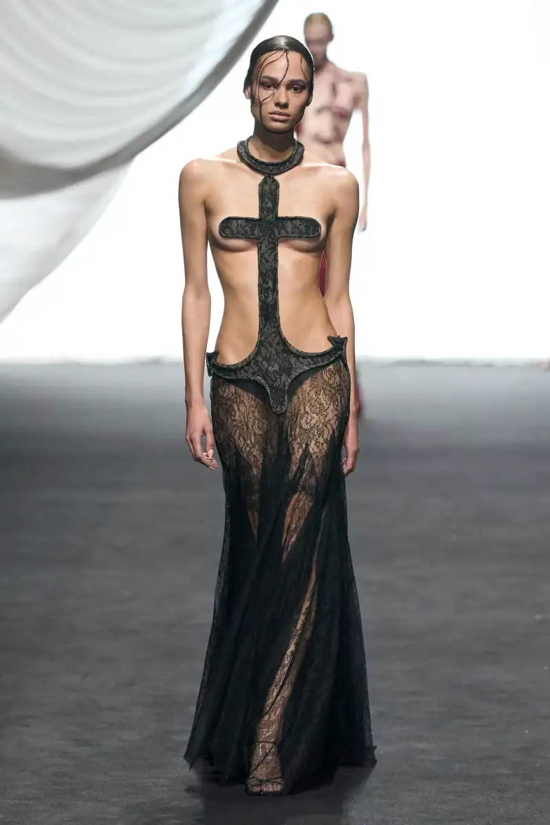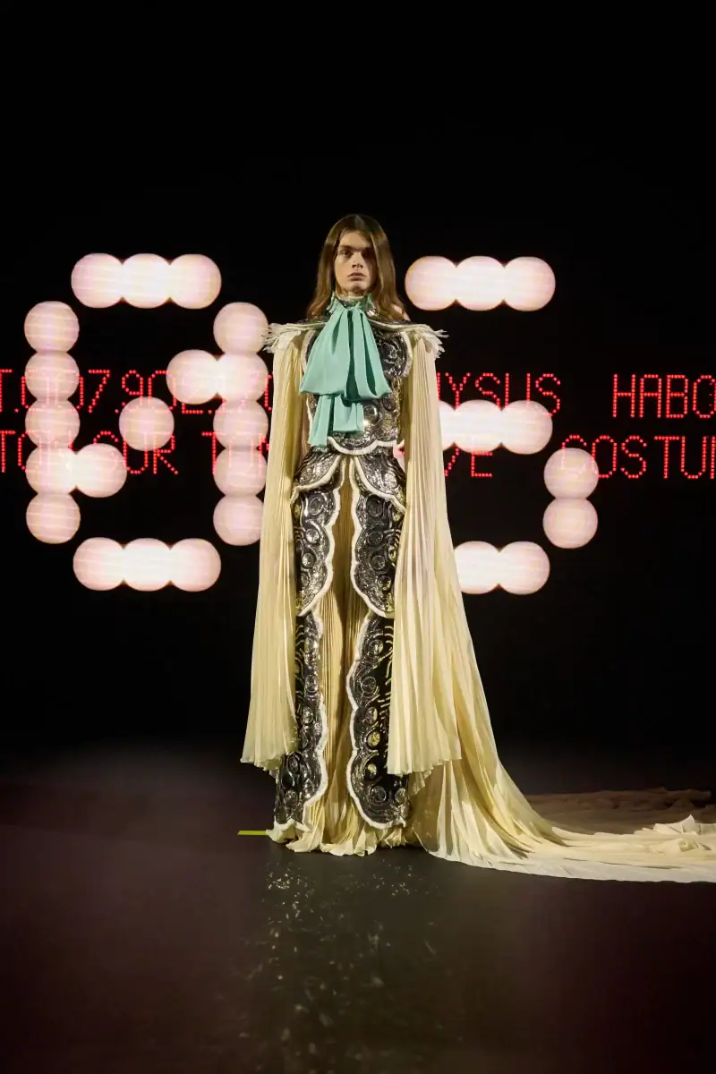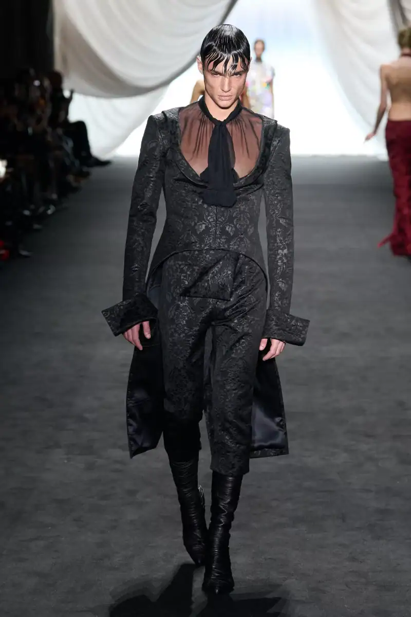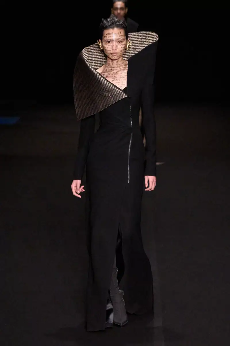 Gaurav Gupta’s haute couture spring 2025 show is the kind of increasingly rare collection you think about for hours, days, maybe even months. The Indian based designer has over 1 million followers on Instagram, but for many who aren’t extremely familiar with haute couture, his name might not be recognizable. Navkirat Sodhi, the designer’s life partner, poet and performer, opened the show with a powerful homage of resiliency after suffering in a recent house fire, deliberately showing her scars under a sheer, diaphanous dress. Gupta specializes in surreal, new world alien-like looks, like futuristic warped gowns and wildly imaginative dresses that wrap around the head and body like otherworldly, glittering shields. This is couture for a new world.