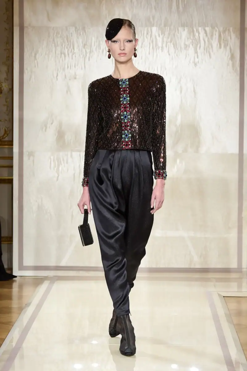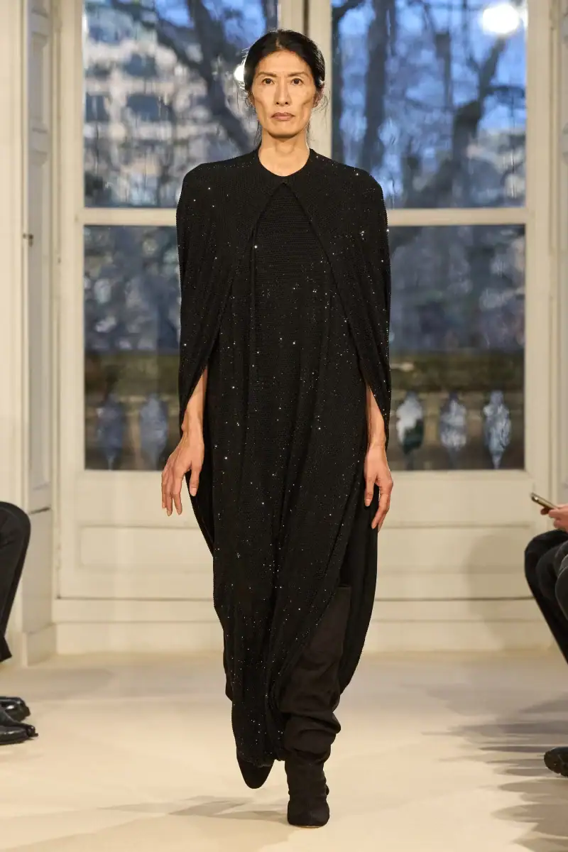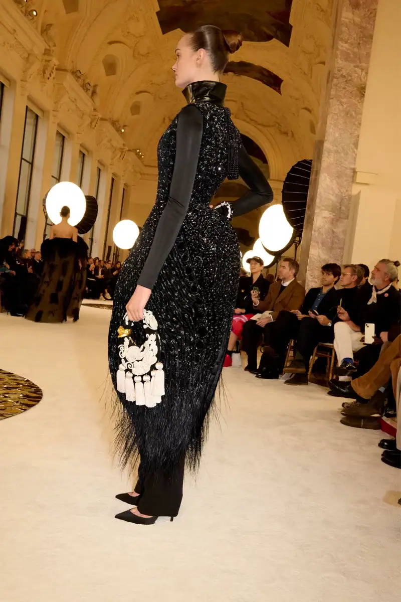 Alexandre Vauthier had a quiet, off-schedule show that felt more toned down and earthier than usual. Gone were the neon jackets, club-ready mini dresses and sexy, loud, in-your-face pieces. Surprisingly, Vauthier’s latest collection looked incredibly wearable and beautifully crafted, with lots of oversized, remixed suiting, luxe fringe and plenty of chic, black gowns with touches of velvet and small doses of sequins. This newness looks good on you, Vauthier. Also notable: the casting which included women of a variety of different ages and backgrounds. We would have loved to see some more size diversity too, but let the record state: this was the best casting of the spring 2025 haute couture season.