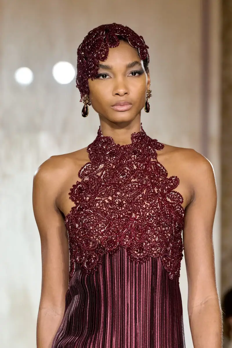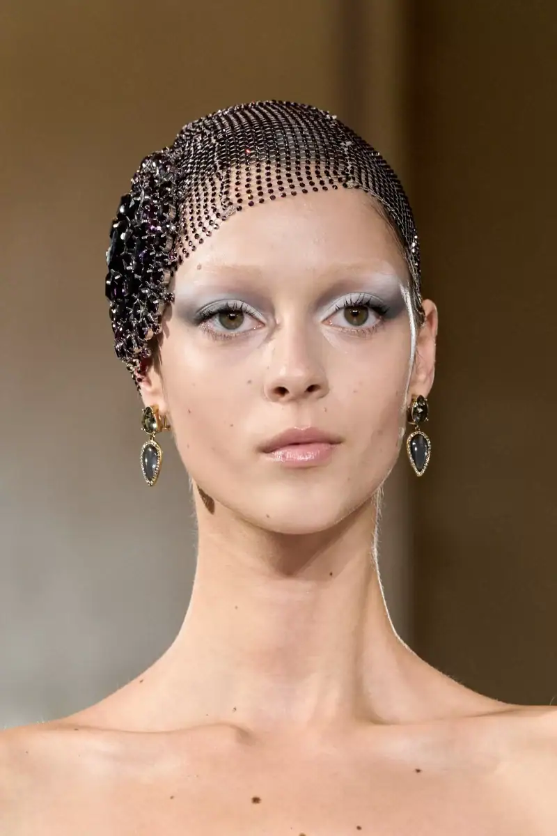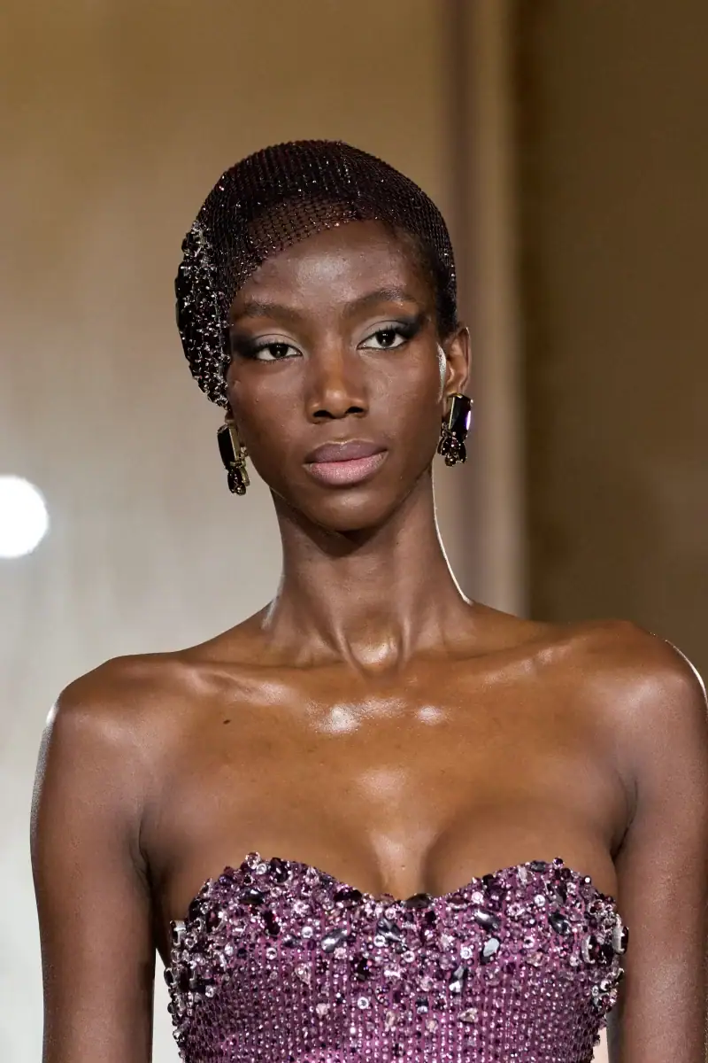 Armani Privè celebrated 20 years this season, and we saw all the beautiful kinds of things we know from the brand, like master tailoring, sheer crystal gowns and a hefty influence of Southeast Asian inspired aesthetics. But what really stood out were the incredibly magical crystal netted rhinestone caps that were equal parts 1920s antique store dream and 1980s fantasy. They are perfect and we would wear them with literally anything–hands down, the most standout, exciting accessory of the spring 2025 haute couture season.