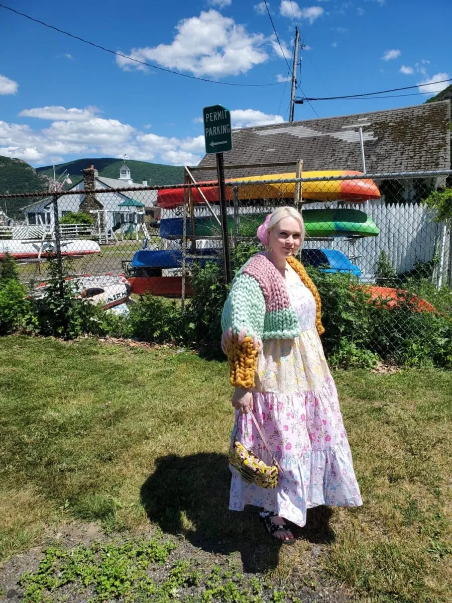 I’ve been wearing it over little sundresses and silky cami tops with don’t have straps. This is the perfect knit for summer, because of the light colors and fun shape. When I tell you it’s really the most unique sweater I’ve ever owned, I mean it: even my boyfriend, who isn’t into fashion, was enchanted by it and kept wanting to touch it.