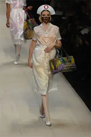 The year was 2007 and the vision was groundbreaking. Imagine: artist Richard Prince’s nurses, brought to life in the flesh by one of fashion’s greats, Marc Jacobs, for legacy brand Louis Vuitton’s spring 2008 show, where he was creative director at the time. The nurses directly reflected Richard Prince’s early 2000s paintings inspired by covers of midcentury pulp fiction.
