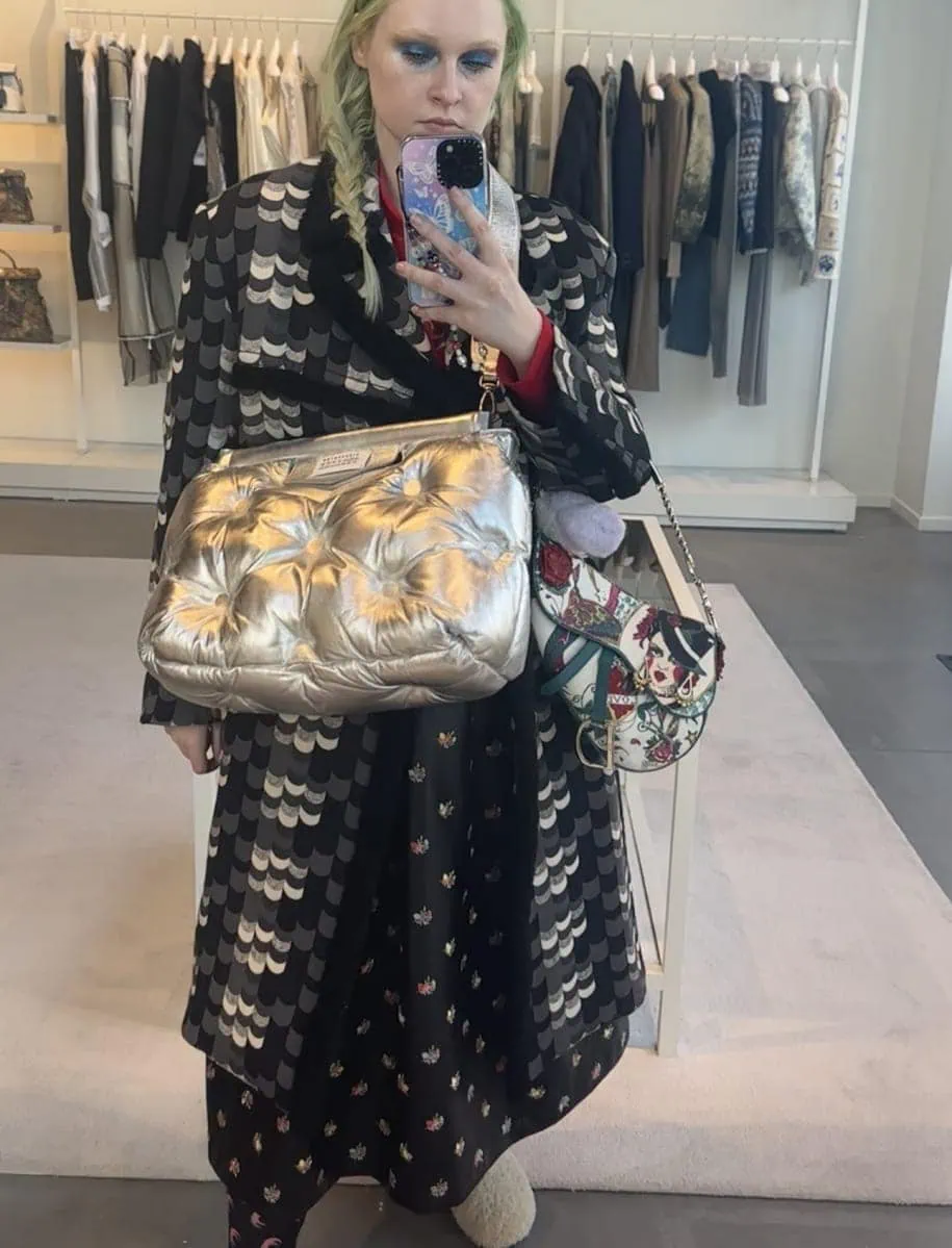 In terms of prices, we were told that the starting discounts average around 30% – 40% off. With Margiela’s ready-to-wear prices being quite high, that means some of the most special pieces were still over $5,000–but some of the discounts were a bit better than that. Many of the bags were priced a little below, or just slightly over $1,000. For example, a mini printed floral Glam Slam bag was priced at about $900 and can be found in a similar style for $2,400 on FarFetch currently. Elsewhere, the large Glam Slam bags were priced at about $1,000 and sell for about $2,500 elsewhere.