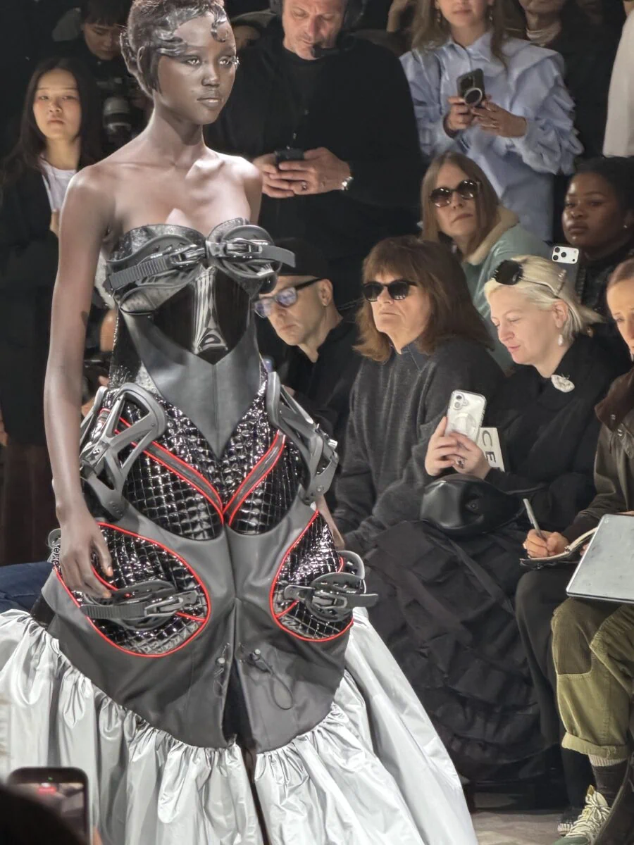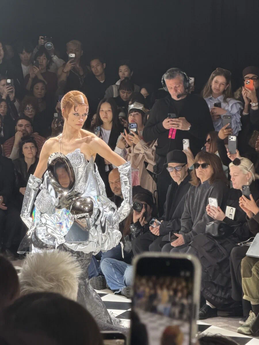 My final show of the day was Balenciaga, smack dab in the middle of Champs-Élysées on a Saturday night. Getting inside posed a challenge. (I overheard one editor say, “I’m just trying to do my job without dying!”). Nevertheless, this was newly named creative director Pierpaolo Picciol’s second collection for the house, where we got to see some really beautiful embellished gowns and outerwear, with a collection that also featured some classic Demna-isms. I think we all can’t wait to see a fully shaped, inherently new Balenciaga by Picciol. But I understand, with this economy in particular, not wanting to alienate current clients. There was also a Euphoria collab with immersive video screens and some of the cast sitting front row. The finale look–a cut-away silver sequin gown–was what left the most stunning impression on me.