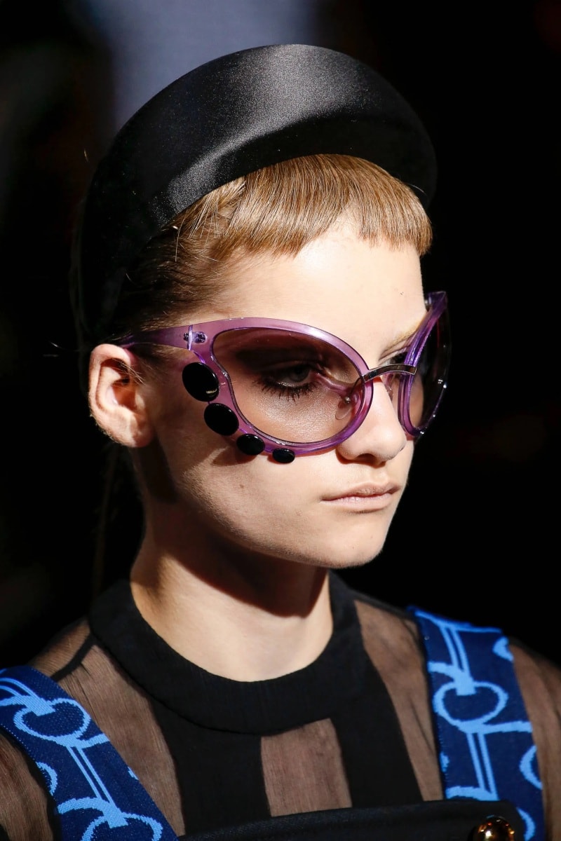 The side view of the Prada spring 2019 sunglasses show just how covetable a pair of strange glasses can be. They can sweep you off your feet–control you; hide you; really set the stage for everything else you wear. It can become a game of power, in which case, sometimes it’s okay to let the sunglasses wear you. Sunglasses might just be the only piece in one’s closet in which that very concept is actually not only okay; but totally warranted, or maybe even desired. It all depends on who you want to be.