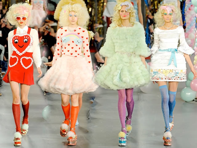 Another one of my favorite Meadham Kirchhoff collections that will forever stand out in my mind was the spring 2012 collection. A mix of 1950s Americana cafe waitresses, Marie Antoinette wannabes and characters from another land came together for the ultimate spectacular celebration of fun fashion. I still want one of those teddy bear overalls and heart printed cardigans. Or perhaps one of the divine, ruffled platform shoes in candy colored pastels.
