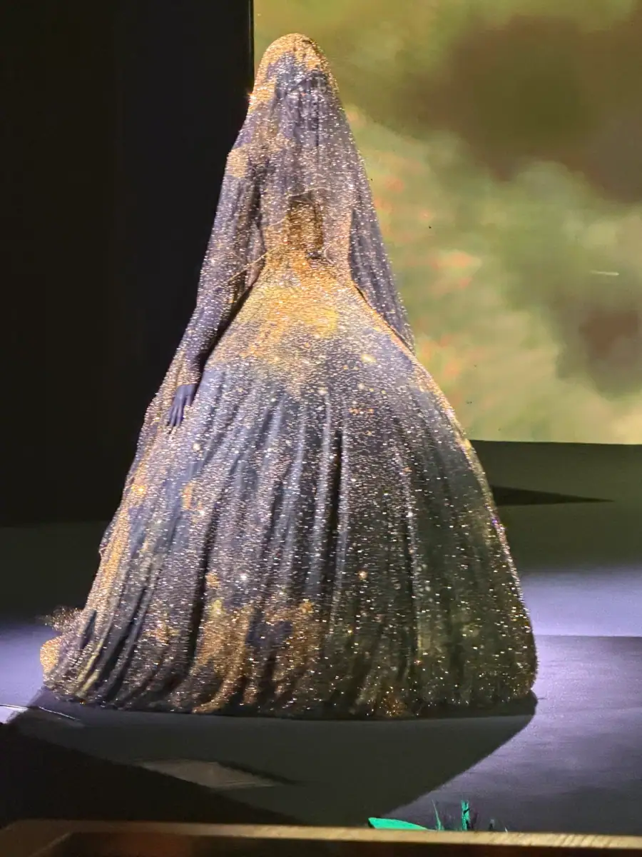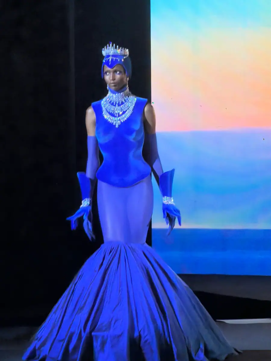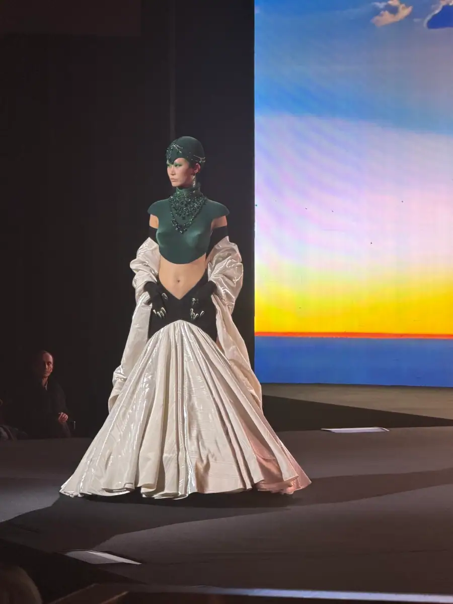In the world of couture, Robert Wun has become the reigning surreal king of camp. Think: floor-skimming gowns covered in a galaxy of decaying glitter, or structured chest plates with masks and headpieces that verge on costumes for unusual characters from another land. The designer always pushes the boundaries of wearability and fantasy, but for spring 2026, he took it one step further. Models walked the stage inside a theater with a stormy backdrop that oscillated between different weather scenarios.