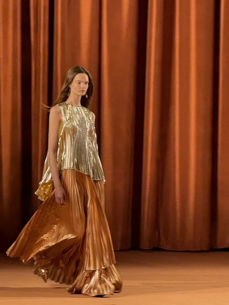 For Ulla Johnson’s fall 2024 show, she brought guests to Brooklyn for a collection fueled by adornment and the trial and error of getting there. Johnson was thinking about the performance aspect of being a woman and all it that encompasses, inspired by the philosopher Judith Butler’s 1990 book Gender Trouble. It’s an interesting topic especially right now, when designers are playing with the multi-dynamic exploration of being a woman (or therefore also, girl) and how it presents itself. Even more interesting was the fact that Johnson chose to integrate male models into her runway show, wearing some of the women’s designs.